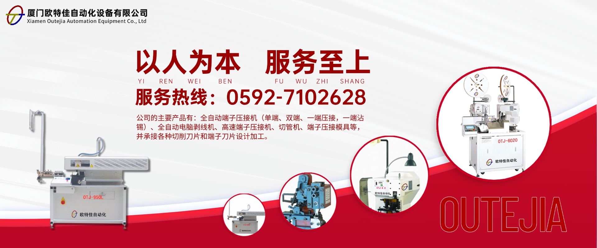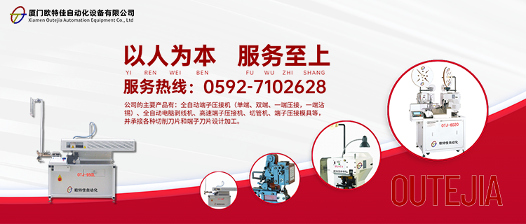 廈門(mén)歐特佳自動(dòng)化設(shè)備有限公司為廈門(mén)歐特佳工貿(mào)有限公司的全資子公司,公司位于美麗的海濱城市----福建省廈門(mén)市,是一家專(zhuān)業(yè)生產(chǎn)自動(dòng)化設(shè)備的高新企業(yè),產(chǎn)品包括:各種線(xiàn)束加工設(shè)備、國(guó)際電線(xiàn)、端子國(guó)內(nèi)總代理、非標(biāo)專(zhuān)用設(shè)備等,其中的線(xiàn)束設(shè)備是源自國(guó)有大型軍工企業(yè),企業(yè)具有很強(qiáng)的自主研發(fā)能力,現(xiàn)有源自國(guó)有大型企業(yè)并有著長(zhǎng)期致力于線(xiàn)束設(shè)備及加工工藝研究的中等技術(shù)人員10多名,公司的主要產(chǎn)品有:全自動(dòng)端子壓接機(jī)(單端、雙端、一端壓接,一端沾錫)、全自動(dòng)電腦剝線(xiàn)機(jī)、高速端子壓接機(jī)、切管機(jī)、端子壓接模具等,并承接各種切削刀片和端子刀片設(shè)計(jì)加工。