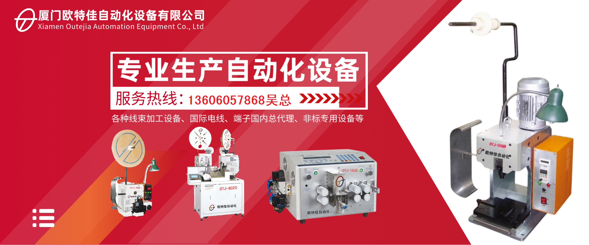 廈門歐特佳自動(dòng)化設(shè)備有限公司原名為廈門銀華電子設(shè)備有限公司,公司位于美麗的海濱城市----福建省廈門市,是一家專業(yè)生產(chǎn)自動(dòng)化設(shè)備的高新企業(yè),產(chǎn)品包括:各種線束加工設(shè)備、國際電線、端子國內(nèi)總代理、非標(biāo)專用設(shè)備等,其中的線束設(shè)備是源自國有大型軍工企業(yè),企業(yè)具有很強(qiáng)的自主研發(fā)能力,現(xiàn)有源自國有大型企業(yè)并有著長期致力于線束設(shè)備及加工工藝研究的中等技術(shù)人員10多名,公司的主要產(chǎn)品有:全自動(dòng)端子壓接機(jī)(單端、雙端、一端壓接,一端沾錫)、全自動(dòng)電腦剝線機(jī)、高速端子壓接機(jī)、切管機(jī)、端子壓接模具等,并承接各種切削刀片和端子刀片設(shè)計(jì)加工。公司是日本知名線束設(shè)備制造商JAM的長期OEM供應(yīng)商。